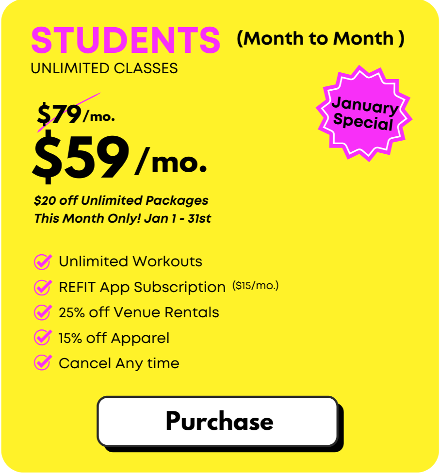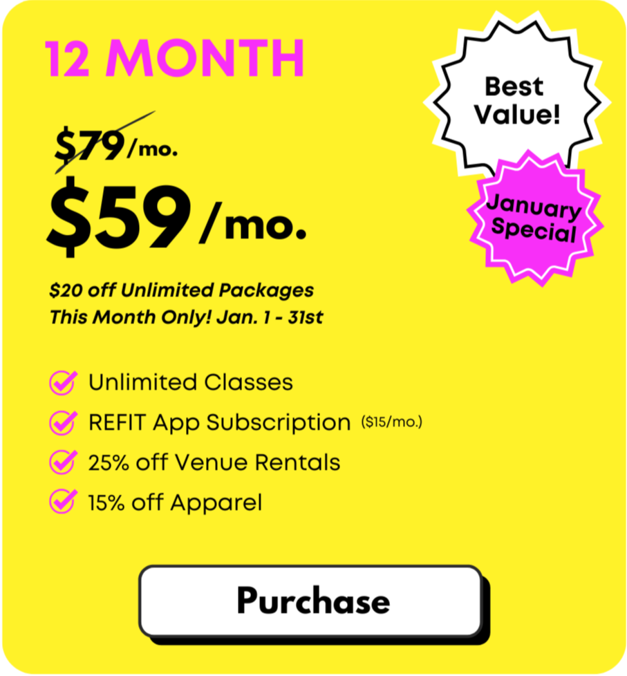 The REFIT Studio in Waco, Texas offers a variety of flexible fitness membership options designed to fit your lifestyle. Whether you’re looking for unlimited access, short-term plans, or convenient class packs, we’re here to help you choose the option that works best for you.